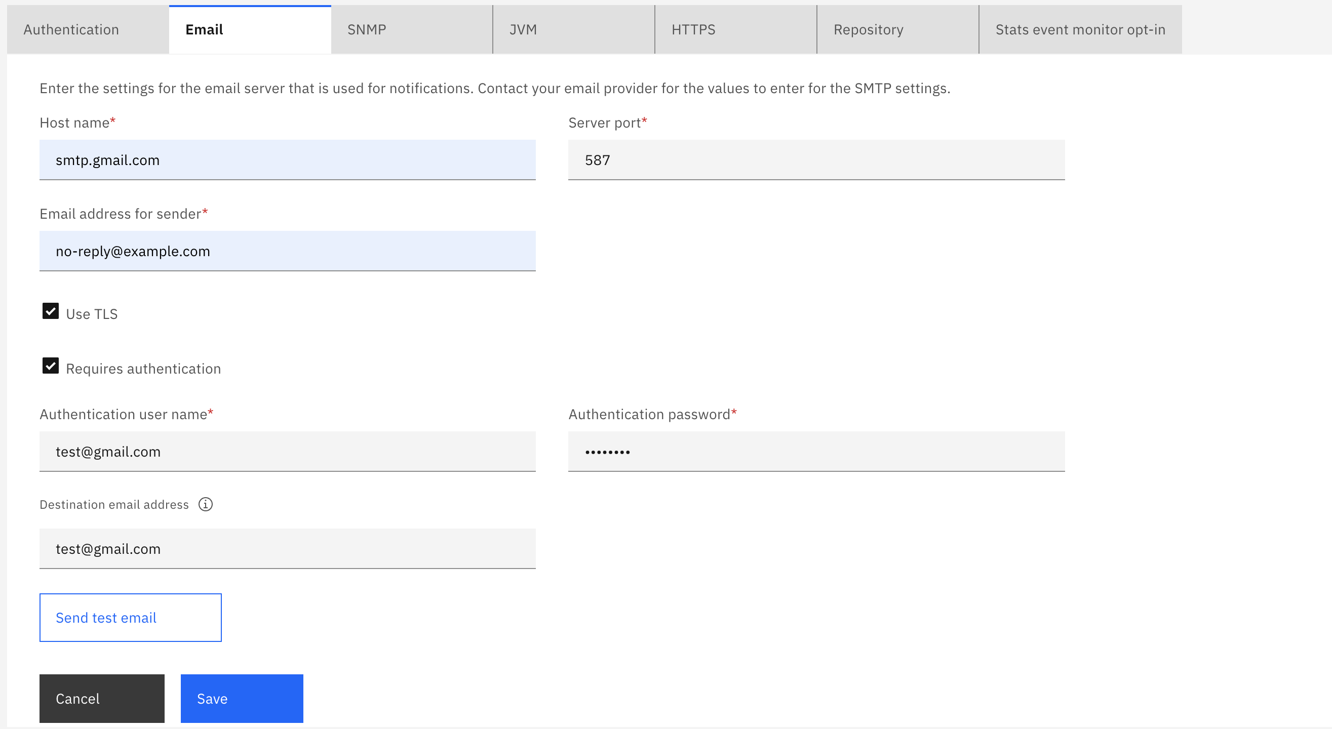 2022-02-08T21:22:47.051Z [ERROR] [ErrorService] - APIError: HWCBAS0019E: Failed to send mail. Ensure that you enter the correct email server info and try again. {....