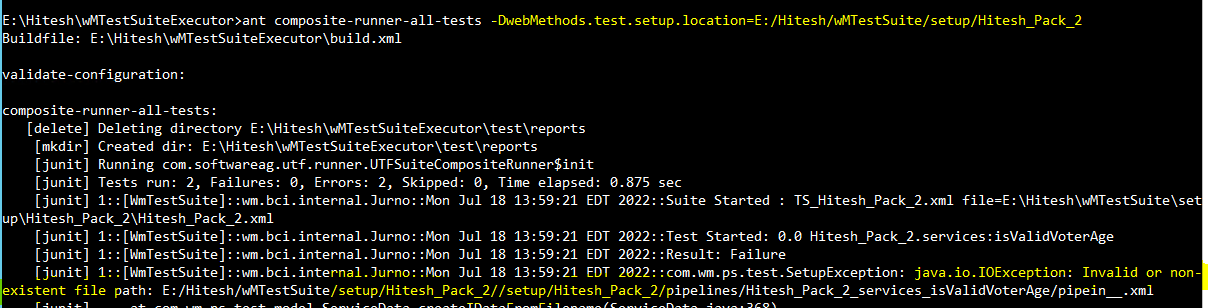 I tried multiple combinations of parameter -DwebMethods.test.setup.location, but haven’t managed to get it running.
