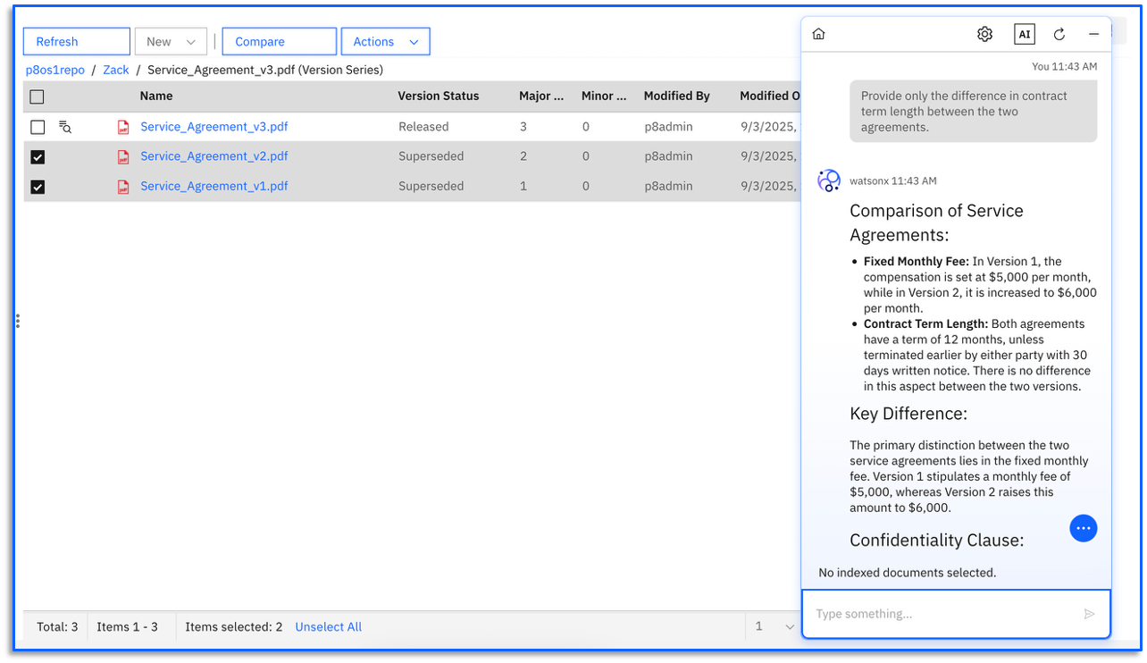 September 2025 brings exciting new updates for IBM Content Assistant, the generative AI add-on to IBM FileNet Content Manager that helps organizations apply generative AI to accelerate how they glean insights from information buried within their content repositories. These updates provide our clients with flexibility regarding hosting location and help them unlock deeper, more meaningful understanding of their documents. More information about Content Assistant can be found in the IBM Knowledge Center.