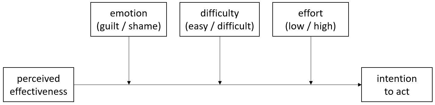 DV: intention to act (mean score of 3 measurements measured by 7-point Likert scale)