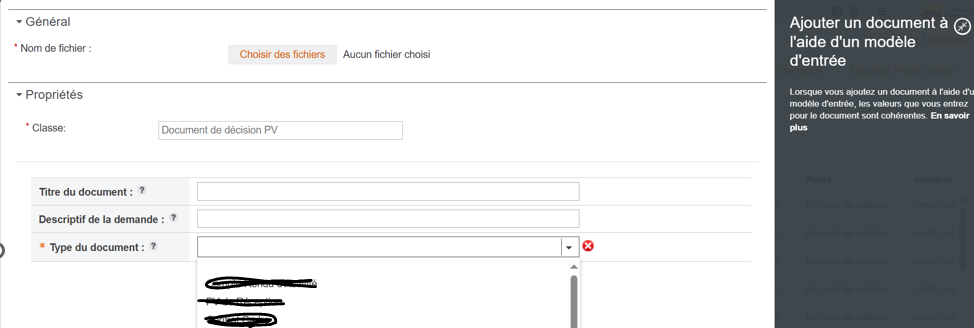 I use Entry template to display a drop-down list of document types (a drop-down list declared in BAW).