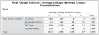 Here is a crosstab of my original membership (named on the left in rows) compared to the current 4 cluster solution (1-4 columns).