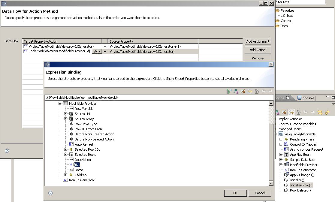 I’ve followed the example trying to implemement the “add row” logic via a Java action.