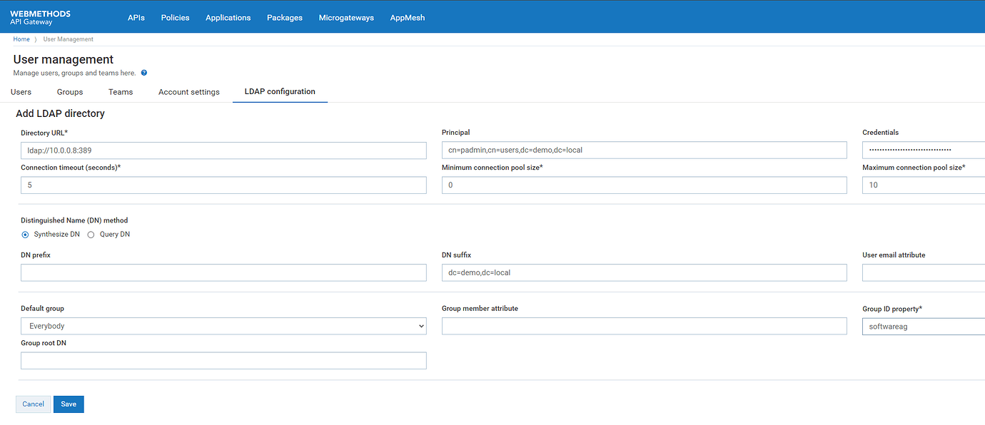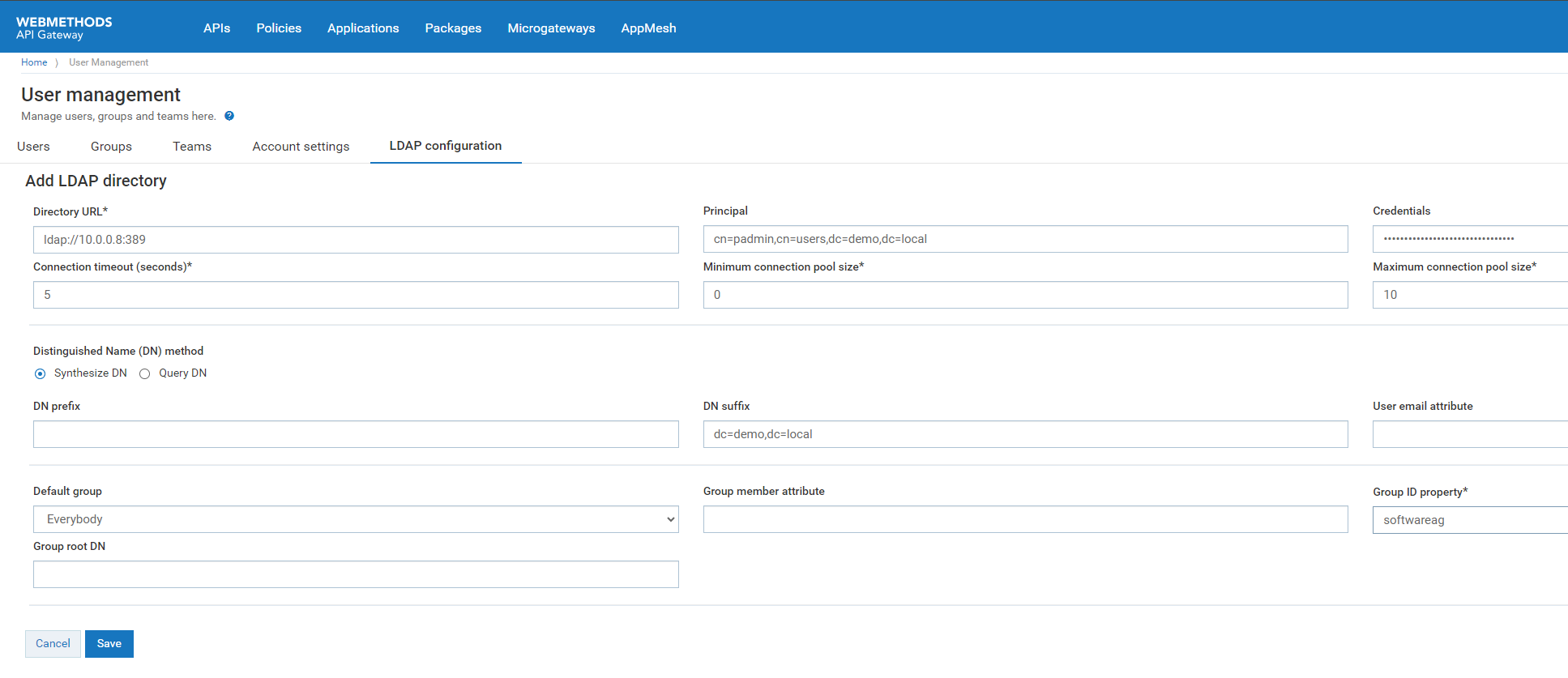I try to config LDAP in API gateway and API devportal but not success. Please help or suggest me , Thank alot.