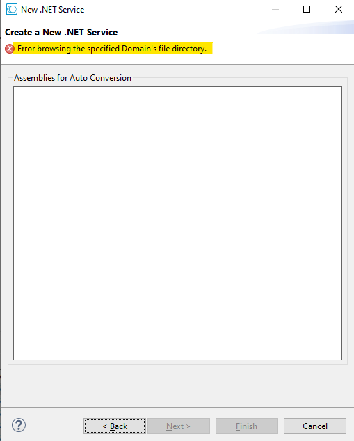 But when I try create .Net service I see following screen/error message with disabled Next/Finish button: