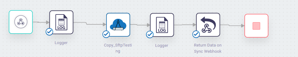 Below is the workflow, I am getting unauthorized while invoking copy_SFTPtesting flow service( 3rd on in the flow)