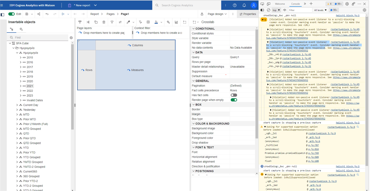 I have a case where a user, with a Microsoft Surface Pro device, is able to create a report but he is unable to drag & drop items from the source pane to the list. Actually whenever he tries to drag & drop items from the source pane the report stop responding and the user is unable to do anything. He tried it in Chrome, Edge and Firefox with the same result.