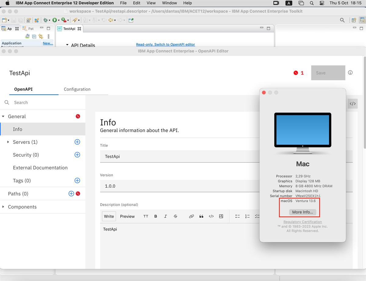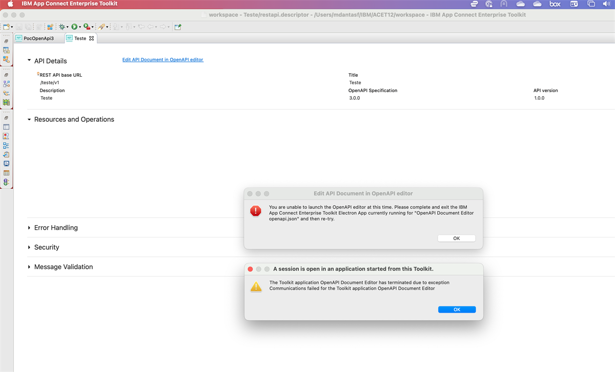 Screenshot with failed to open OpenAPI Editor (macOS Sonoma):