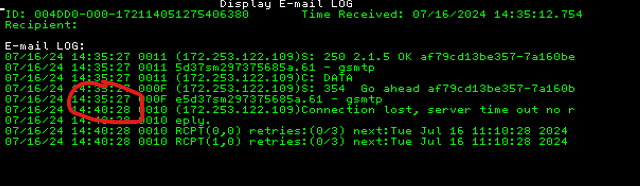 I am having issue with the SMTP client timing out at 5 minutes on sending attachments.  The connection is with OAUTH to GMAIL and works great except for the issue with larger attachments.   I have test with smaller attachments and it works.   This is on a power 9 with V7R2M0 installed. Here is a snapshot of disconnect in log: