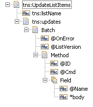 <tns:UpdateListItems xmlns:tns="http://schemas.microsoft.com/sharepoint/soap/">