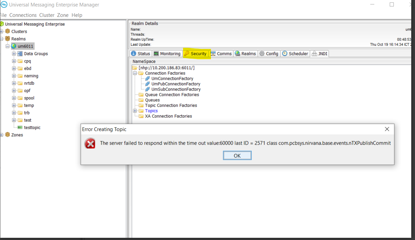My Customer using UM 9.12 and IS 9.12. they face an issue where UM responds slowly until an error appears like the one below when they want to publish a message using pub.jms:send :