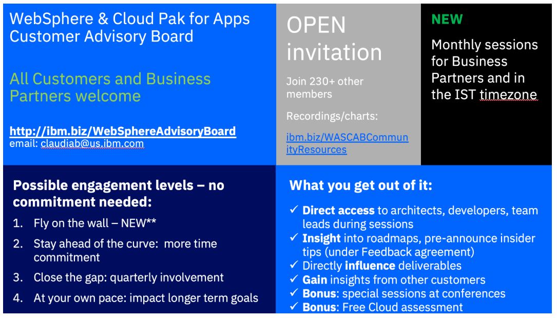 Websphere Customer Advisory Board that we mentioned during the Liberty Lab webcast: