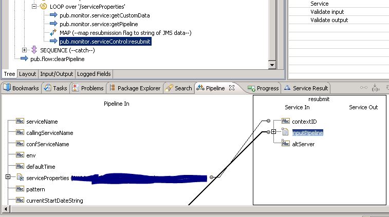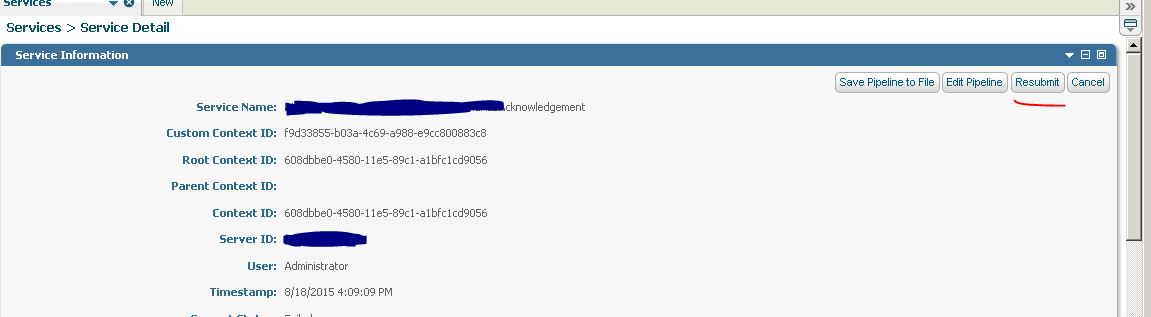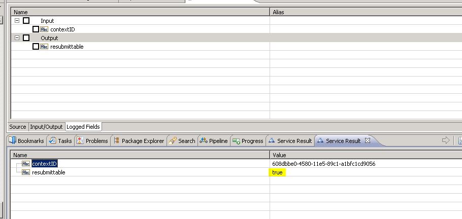 Now, we have built another service, called: resubmitACK, where we are using the service: pub.monitor.serviceControl:resubmit to perform the task. The submission will happen based on the contextID which is generated for each transaction.