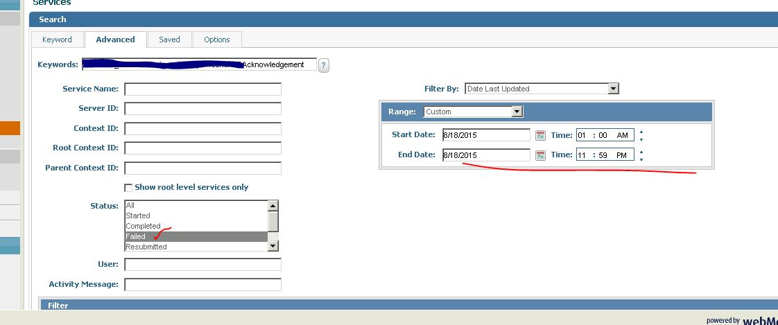 Scenario: A service by name sendAcknowledgement have a logic to do it’s ack job. In case if the service is getting failed, it will log an error OR a failed transaction in MWS.