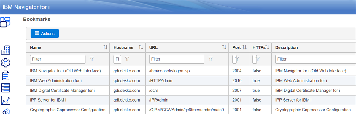 I modified "IBM Web Administration for i" and "IBM Digital Certificate Manager for i" to use the right port, and to use https. Snipped that and added it to the document.