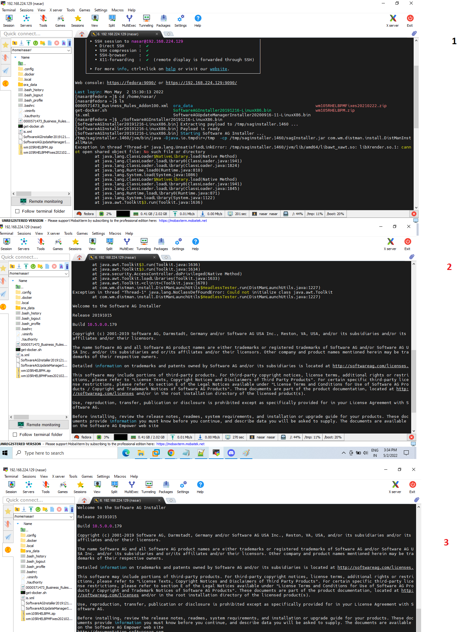 I am getting the following error as stated in pic attached when i am trying to install ./SoftwareAGInstaller20191216-LinuxX86.bin file after running this bin file the GUI installer should pop up but its showing error.