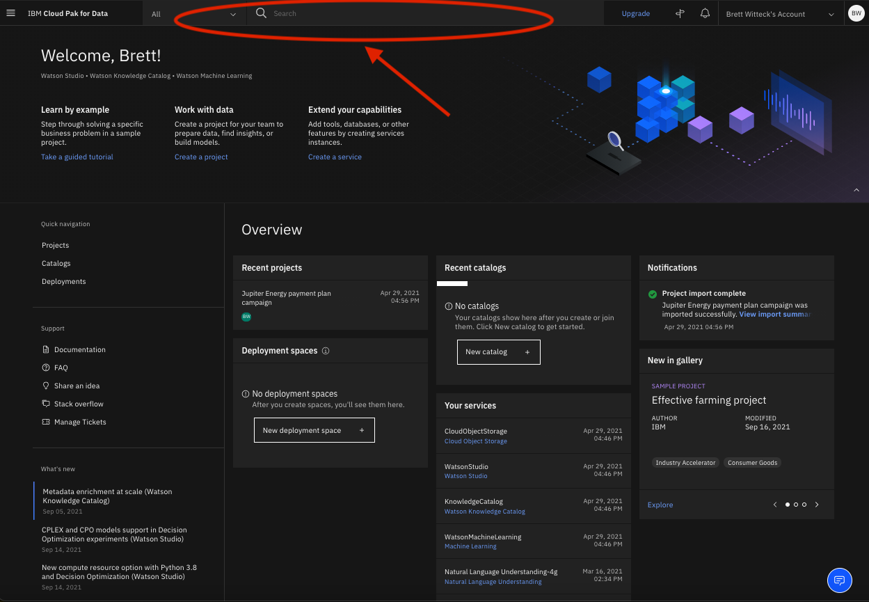 I will tell you, even on Watson Studio, not using much the search bar, think used it only once.