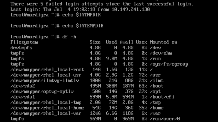 Just double check if IATMPDIR environment variable is being set on this Linux box .
