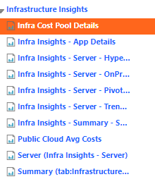 In your case it looks like the component, "Infrastructure Insights" has been enabled. When you enable a component, Apptio includes the tables and reports associated to that component. These newly included tables and reports are displayed in Blue.
