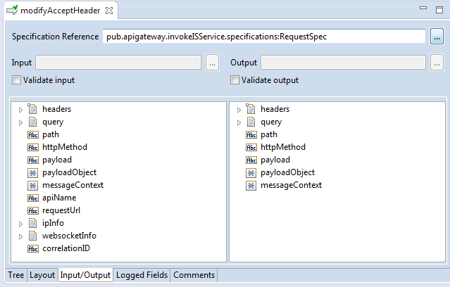 In this approach, you can easily read/write the contents using the input/output pipeline variables provided in the Spec. You need not write java code to read/write the contents from the message context. This approach is introduced in API Gateway 10.2 and Software AG recommends you to use this approach to transform the contents from version 10.2. The following sections provide a detailed view of this approach.