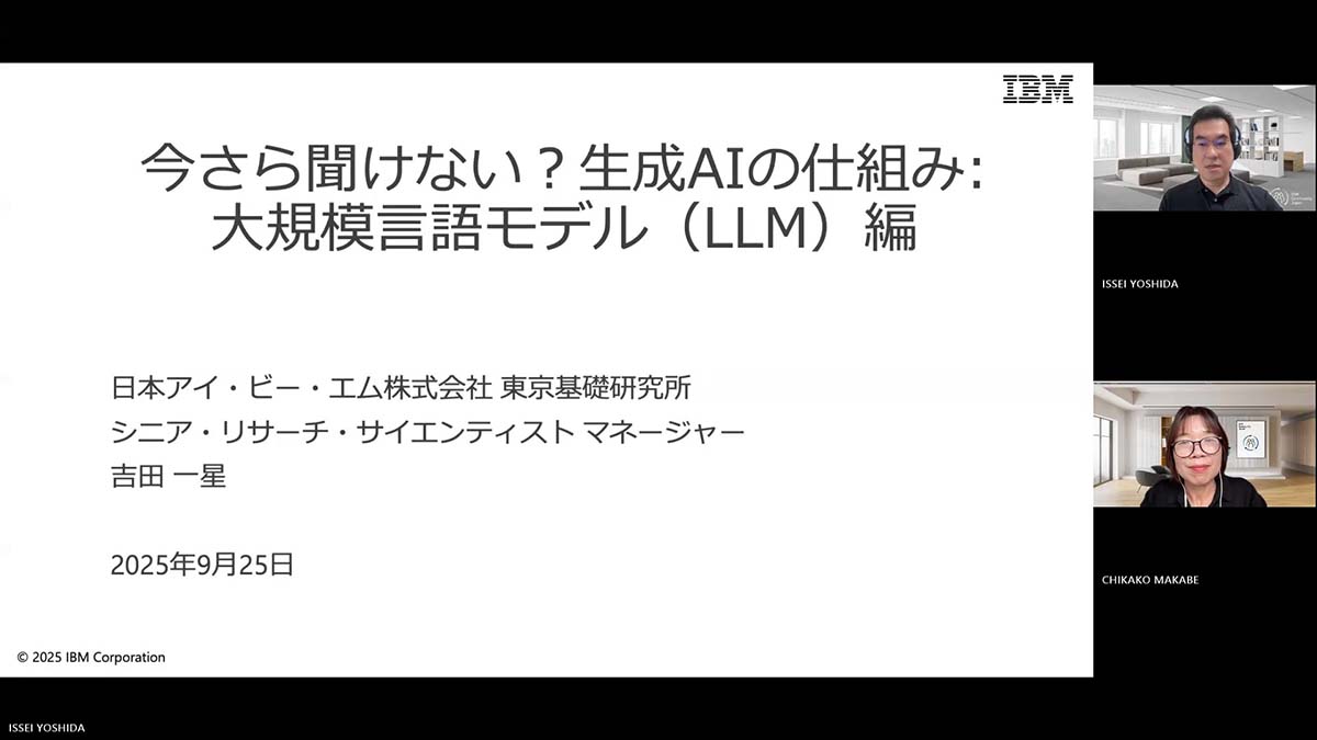 グリーンAIの取り組み、サステナブルなAIなど、AIの発展が環境にもたらす影響という観点で、IBMのDE (技術理事) による講演・対談を開催。