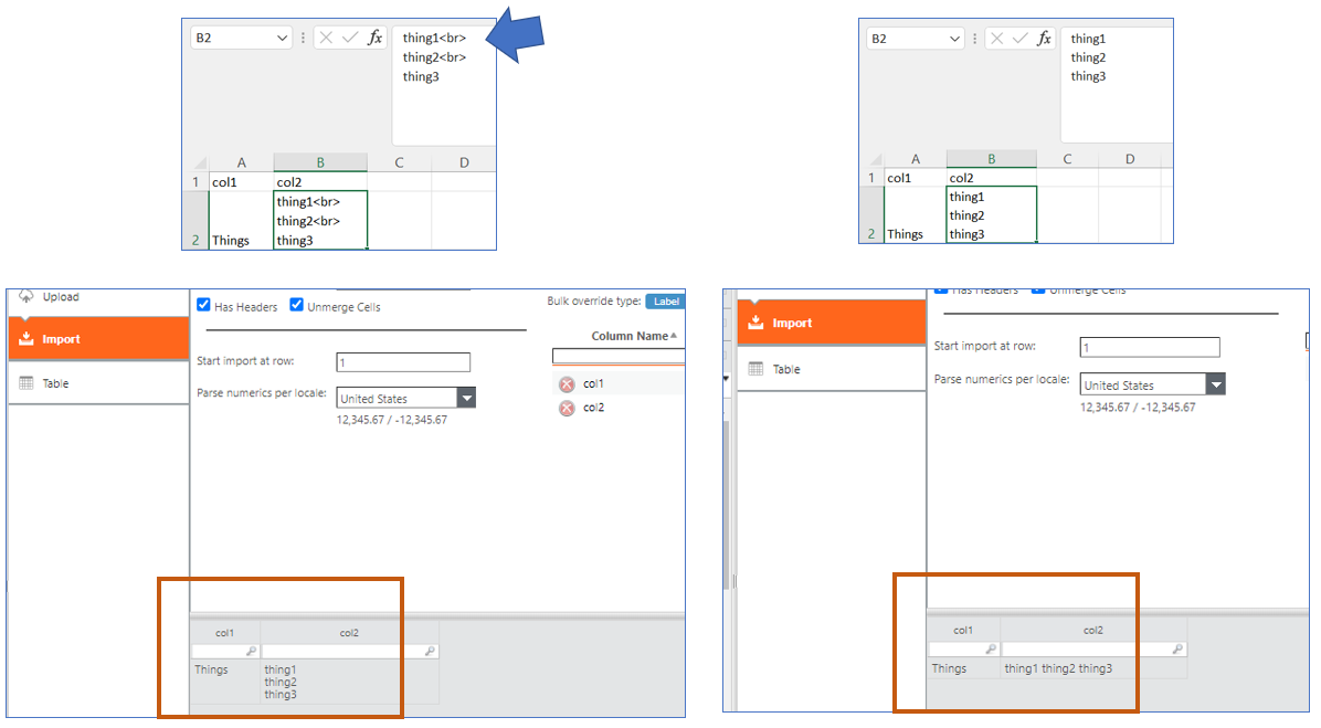 Another option is adding html line breaks <br> to the file before uploading. This is more manual and would only make sense if splitting could not be done... like the 2nd scenario below.