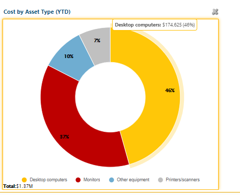 I have a modeled metric called 'Asset Cost' for which I have a pie chart to reflect the monthly cost by asset type. As shown in the screenshot below, my monthly chart only has 4 types: