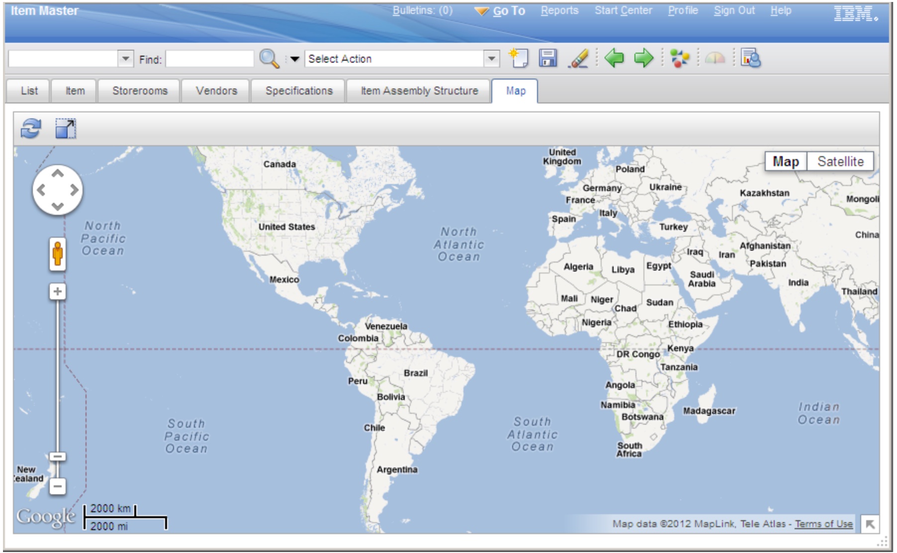 Having a valid Map Manager configuration go to Item Master application (Go to -> Inventory -> Item Master). Open a record and click on the Map tab.