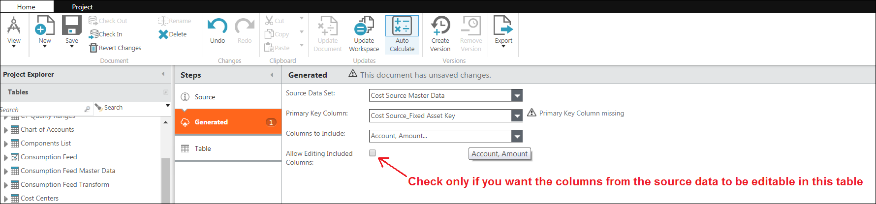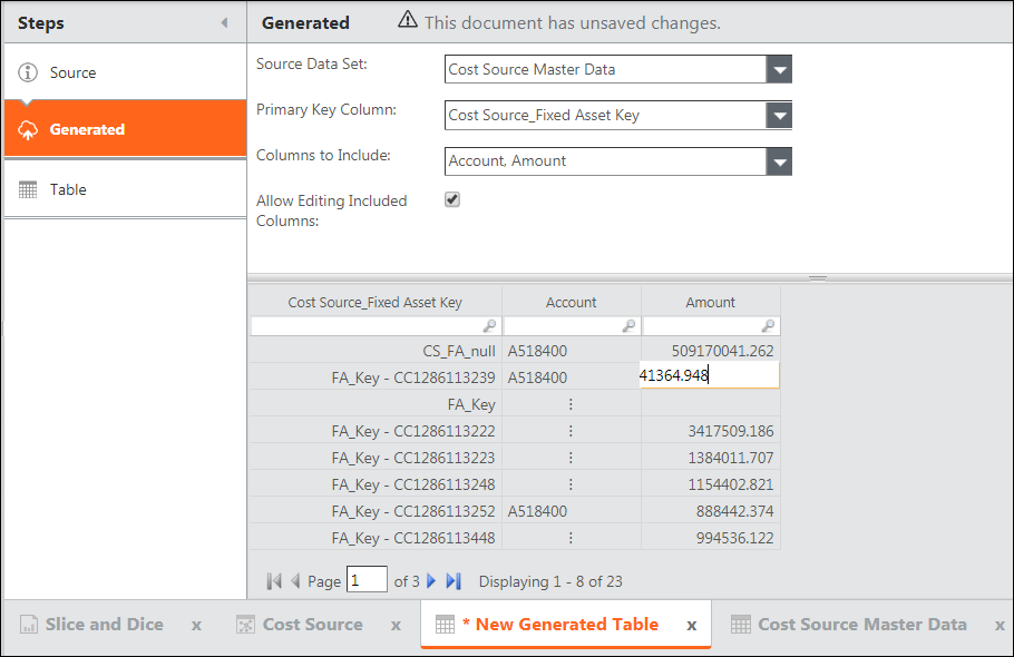 - Use Generated Tables with care. Your goal should always be to keep your data progressing forward from its source so that new data, entered at the GL level, will continue to flow up the model.