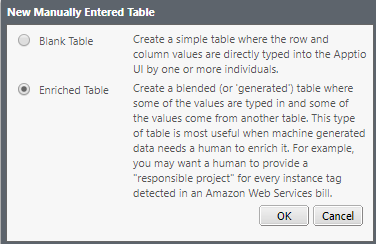 - In the New Manually Entered Table dialog box that appears, click Enriched Table and then click OK.