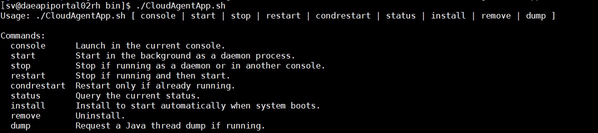 Start: To start the CloudAgent using the command ./CloudAgentApp.sh start