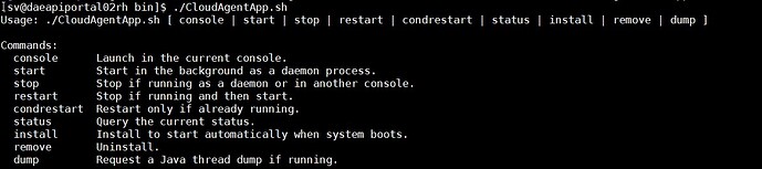 Status: If you are not sure whether CloudAgent is running or not you can query the running status of CloudAgent using ./CloudAgentApp.sh status