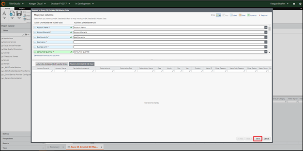 - Save Azure EA Detailed Bill Master Data and check it in.