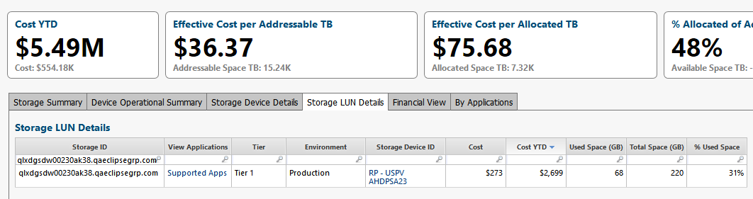 In my cost transparency model, I directly allocate Storage cost to my list of Applications: