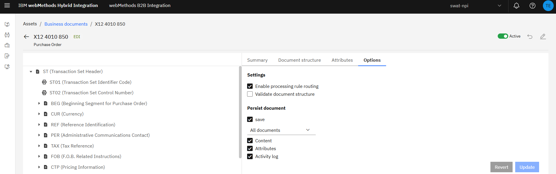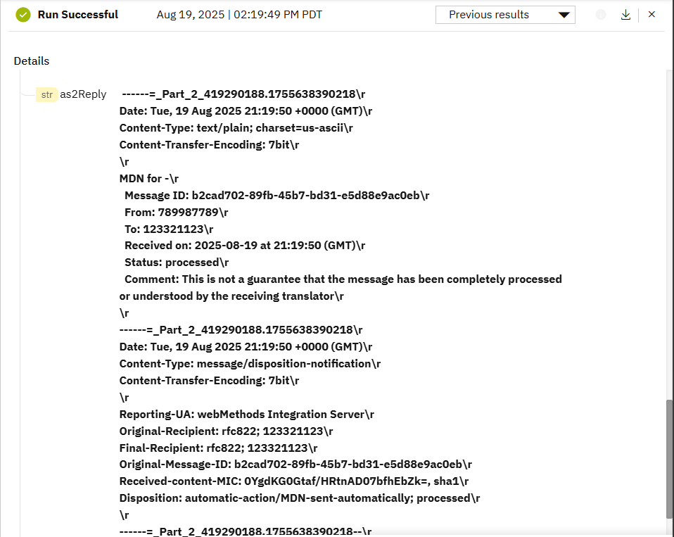 Now, we are ready to send an EDI transaction to B2B over AS2. For testing, I have created a service called sendAS2. To run it, enter the URL, username, password and EDI payload.