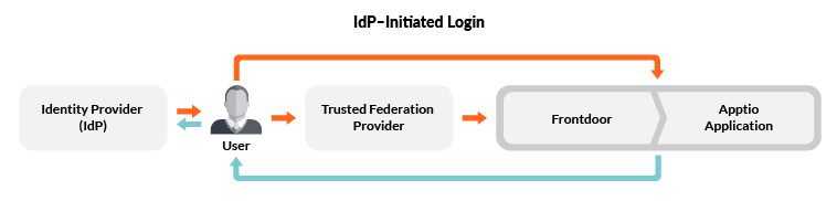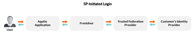 In a service-provider (SP)-initiated login flow, the SP (in this case, Frontdoor) generates an authentication request that is sent to the IdP as the first step in the Federation process. The IdP then authenticates the user and responds with a response to confirm the logged-in user’s identity.