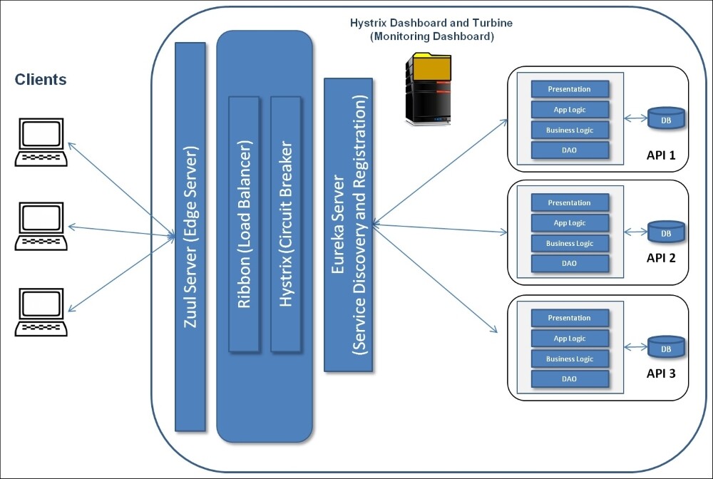 If you have a look at Netflix deployment architecture - https://www.nirmata.com/2014/08/13/getting-started-with-microservices-using-netflix-oss-docker/