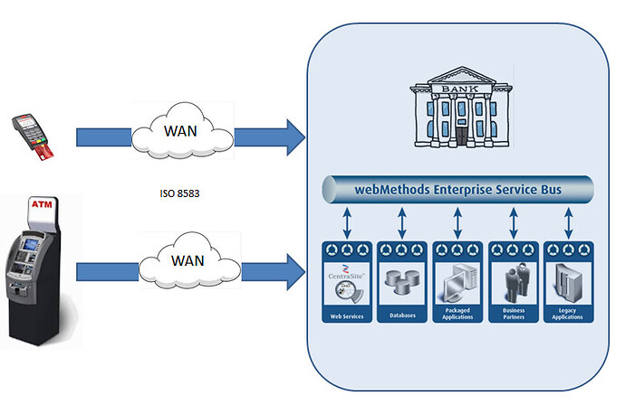 webMethods Module for ISO 8583 is a product layered on top of webMethods Integration Server that helps you to exchange all the cardholder-originated transactions and easily integrate them with core banking applications. The module also makes use of webMethods Trading Networks to provide many features including transaction logging and auditing, merchant specific reports, etc.